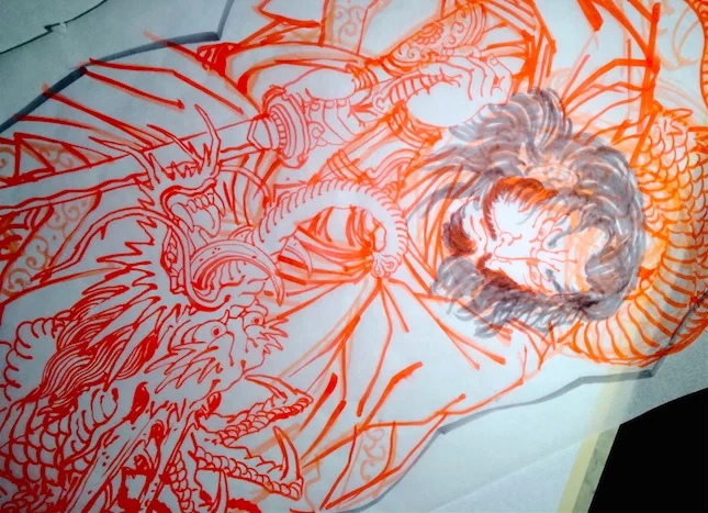 Rough sketch for Shawn's back piece. December 14, 2014 Starting soon. Tattoo drawing by Chris O'Donnell 2014