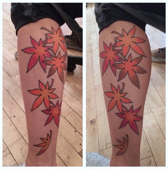 Maple Leaves for Margeaux... January 12, 2016 Fun 1 session tattoo for an old friend. Kings Ave NYC Tattoo by Chris O'Donnell 2016