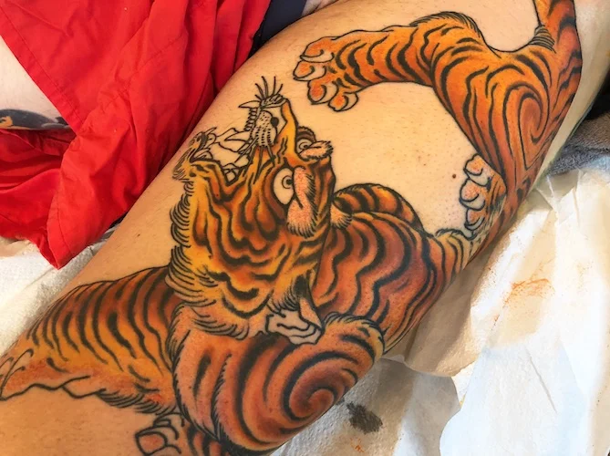 In-progress Tiger for Justin... January 22, 2018 Started at Kings Avenue Tattoo NYC In-progress tattoo by Chris O'Donnell 2017/2018