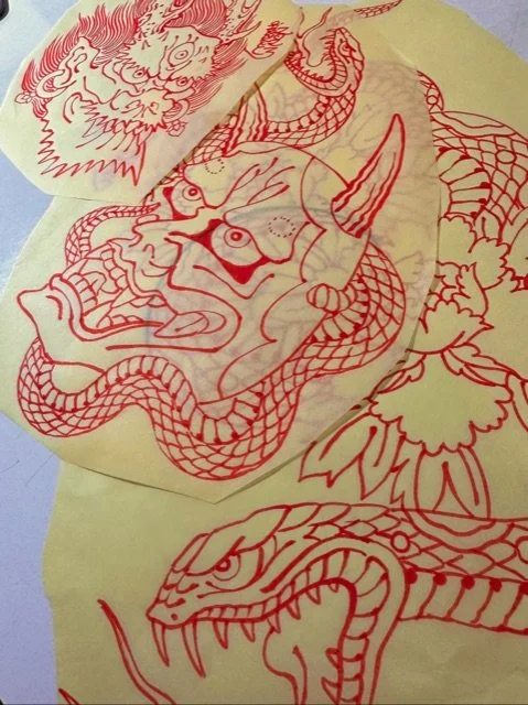 Prep work for today's back piece outline session, phase 1.