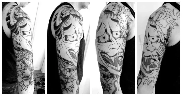 In-progress Hannya, Snake and Peony for Eric!