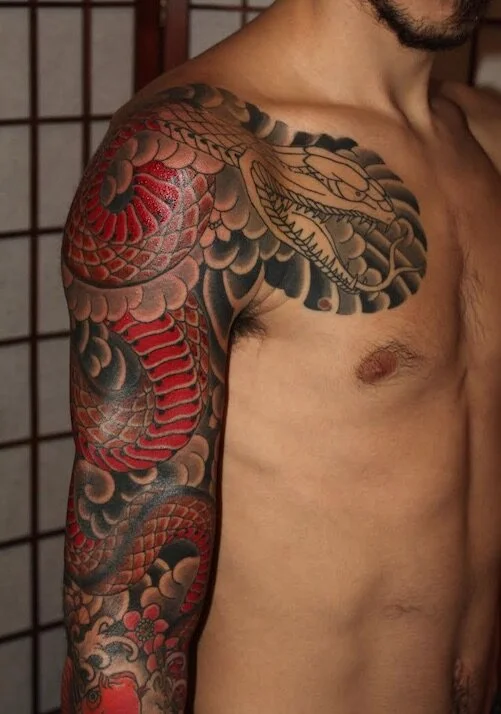 Photo taken after 2nd session. Covering an old tattoo on upper right shoulder. Background next session.